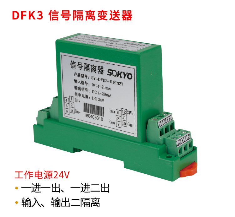 一、隔離變送器,DFK一進一出隔離器產(chǎn)品特點