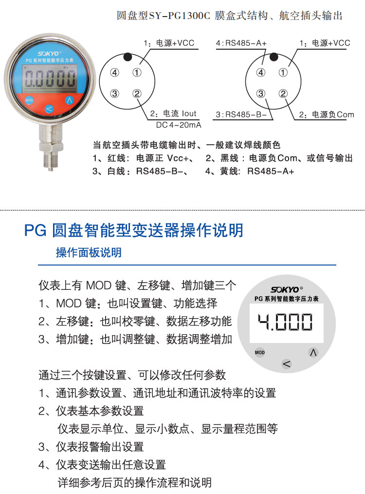 智能壓力傳感器,PGD圓盤型智能壓力變送器接線圖